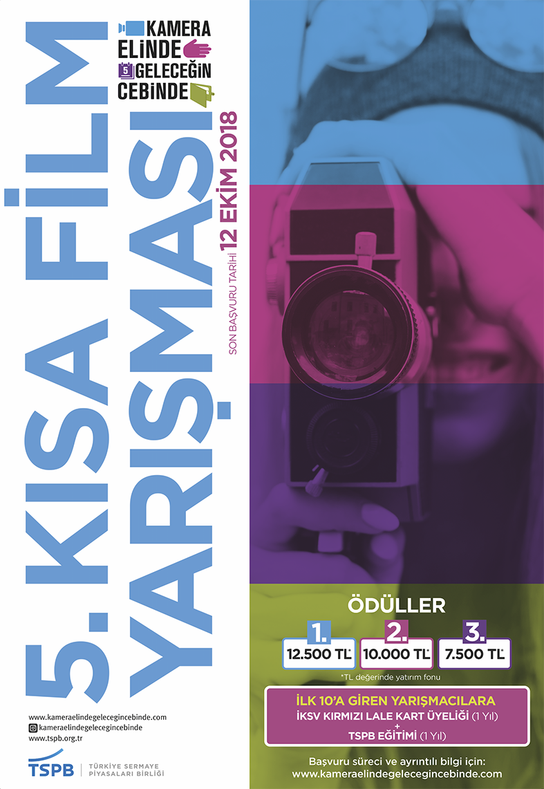 Birliğimizin, tasarruf ve yatırım bilincini aşılamak amacıyla düzenlediği “Kamera Elinde Geleceğin Cebinde” Kısa Film Yarışması için başvurular 12 Ekim 2018 tarihine kadar uzatıldı. Bu yıl beşincisi düzenlenen kısa film yarışmasında dereceye girenleri 12.500 TL’ye varan yatırım fonu kazanma fırsatı ve çeşitli hediyeler bekliyor.