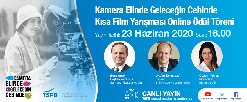 Sermaye Piyasası Kurulu Başkan Yardımcısı Bora Oruç ve Birliğimiz Başkanı Dr. Alp Keler, CFA’in katılımlarıyla, “Kamera Elinde Geleceğin Cebinde” kısa film yarışmasının sonuçları, 23 Haziran 2020 tarihinde, saat 16.00’da canlı olarak gerçekleşecek online ödül töreni ile açıklanıyor.